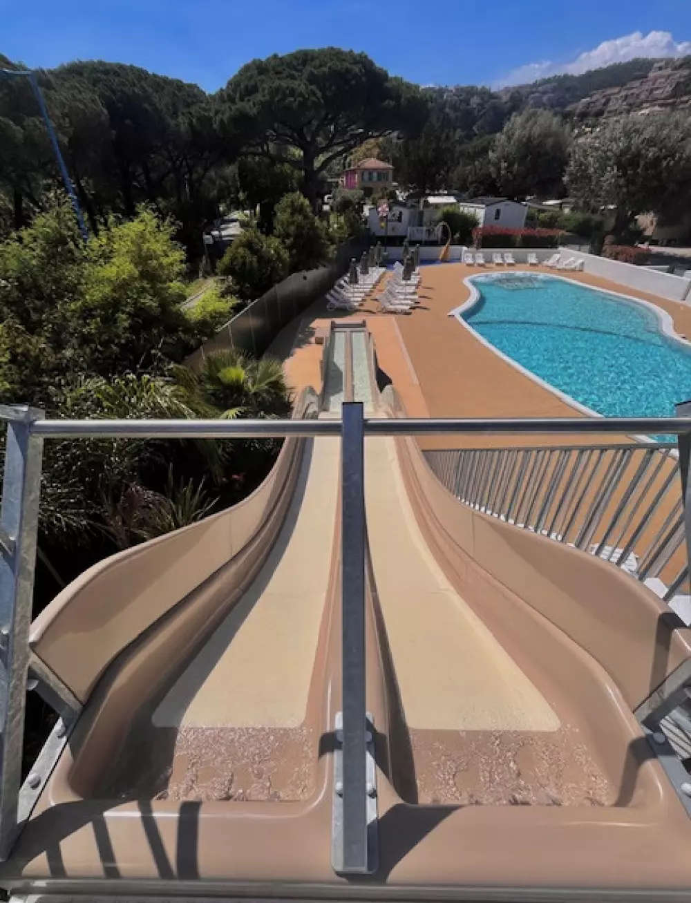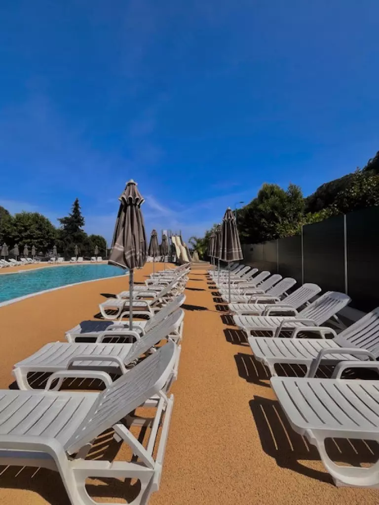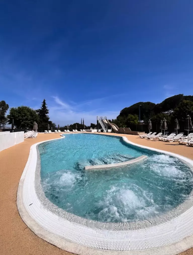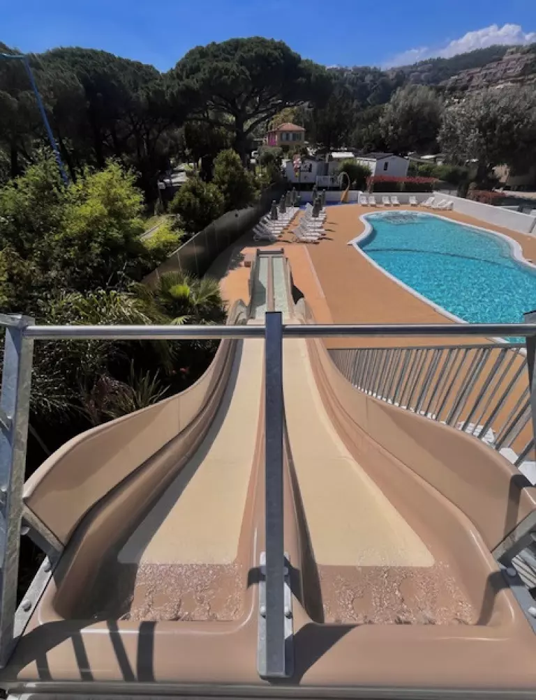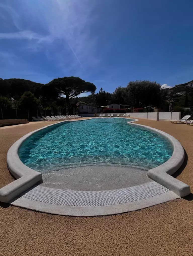Nous proposons un bassin de 190m² avec banquettes anatomiques, et une aire de jeux aquatique. La piscine du camping est l'endroit idéal pour se détendre et profiter du farniente sous le soleil du sud de la France. Vous pouvez vous allonger sur un transat et profiter du soleil, ou plonger dans l'eau pour jouer en famille ou entre amis. Les enfants pourront également s'amuser dans l'eau avec des jeux d'eau, un toboggan et les différentes activités aquatiques proposées durant les animations de l'été (juillet et août uniquement).