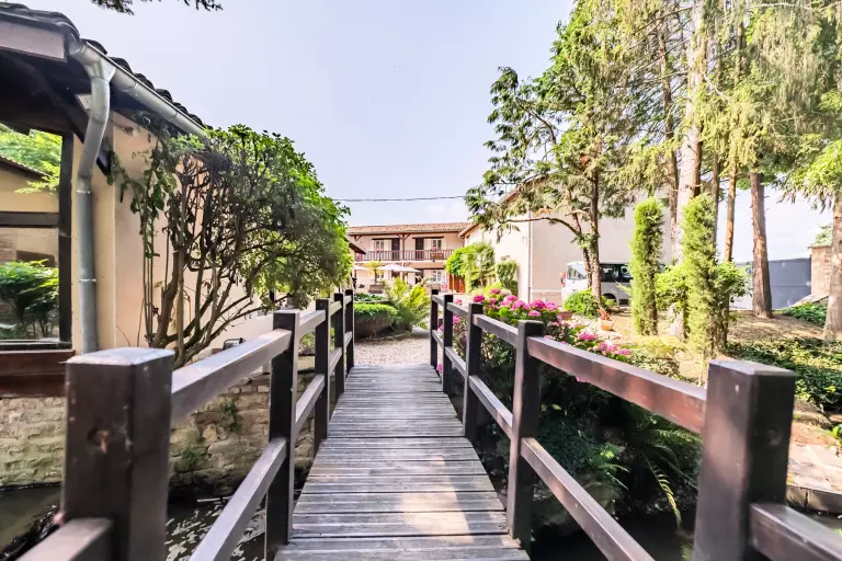 Si vous arrivez par l'A40 en provenance de Genève ou de Mâcon, prenez la sortie n°2 en direction de Feillens. Poursuivez sur la D933 en direction de Feillens, Manziat, Ozan, puis Pont-de-Vaux. Entrez dans le centre-ville de Pont de Vaux et, au rond-point, prenez à gauche en direction d'Arbigny. Traversez entièrement le village d'Arbigny. L'Hôtel du Moulin de la Brevette se trouve sur votre gauche, 800 mètres après la sortie du village.