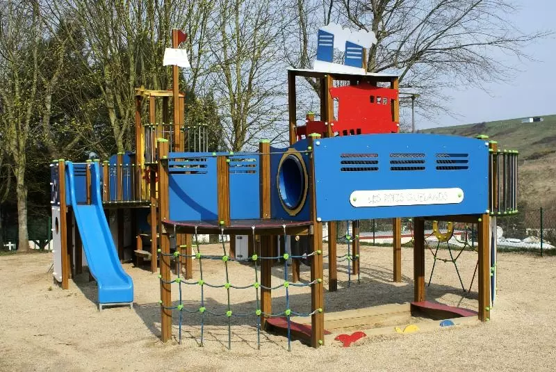 • Aire de jeux pour enfants : Zone de jeux pour enfants outdoor : jeux de sociétés, bac à sable, toboggan | Salle de jeux pour enfants indoor : jeux de société