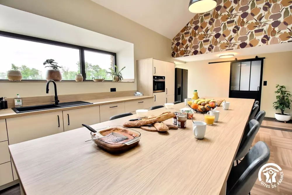 hauteur sous plafond de la cuisine, un espace convivial pour partager vos repas.