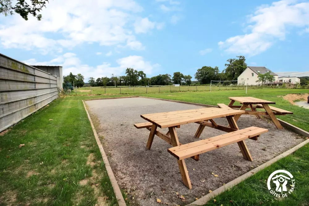 Côté extérieur, place à la convivialité : une belle terrasse pour vos repas en plein air et un terrain de pétanque pour des parties