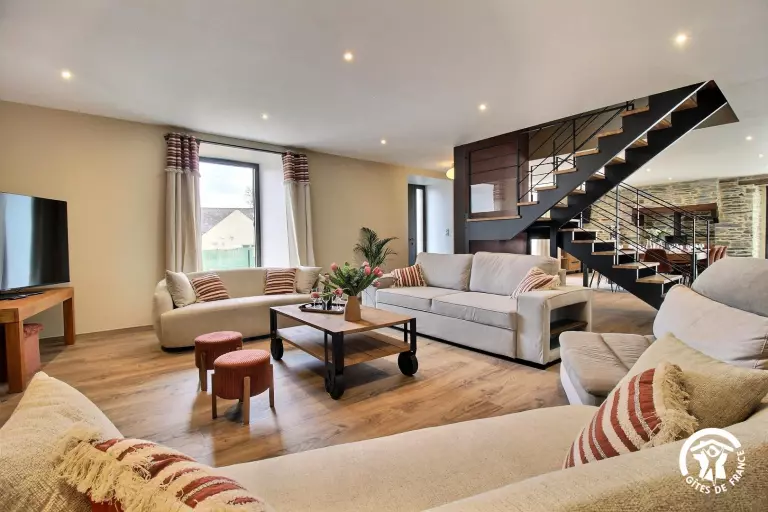 La grande pièce de vie baignée de lumière et le salon cosy sont parfaits pour vos moments en famille ou entre amis. La maison