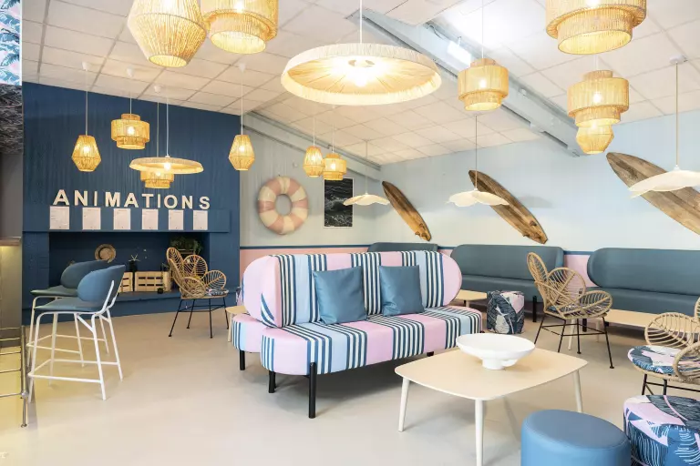 - Des espaces sécurisés et équipés pour les plus petits (salle de jeux, salle de repos, aire de jeux extérieure)