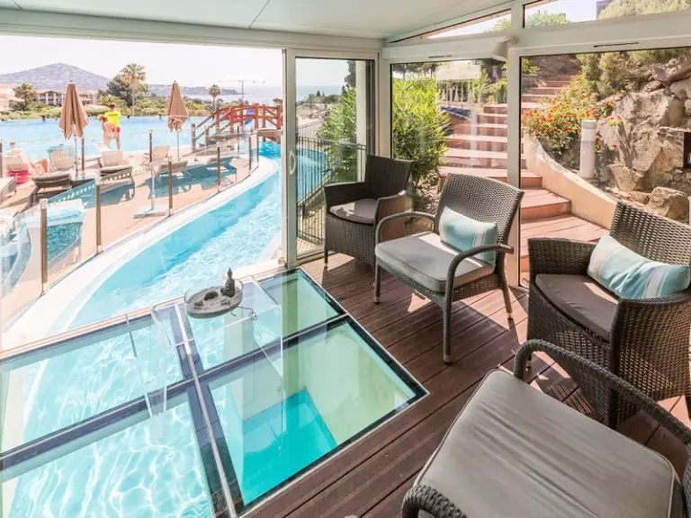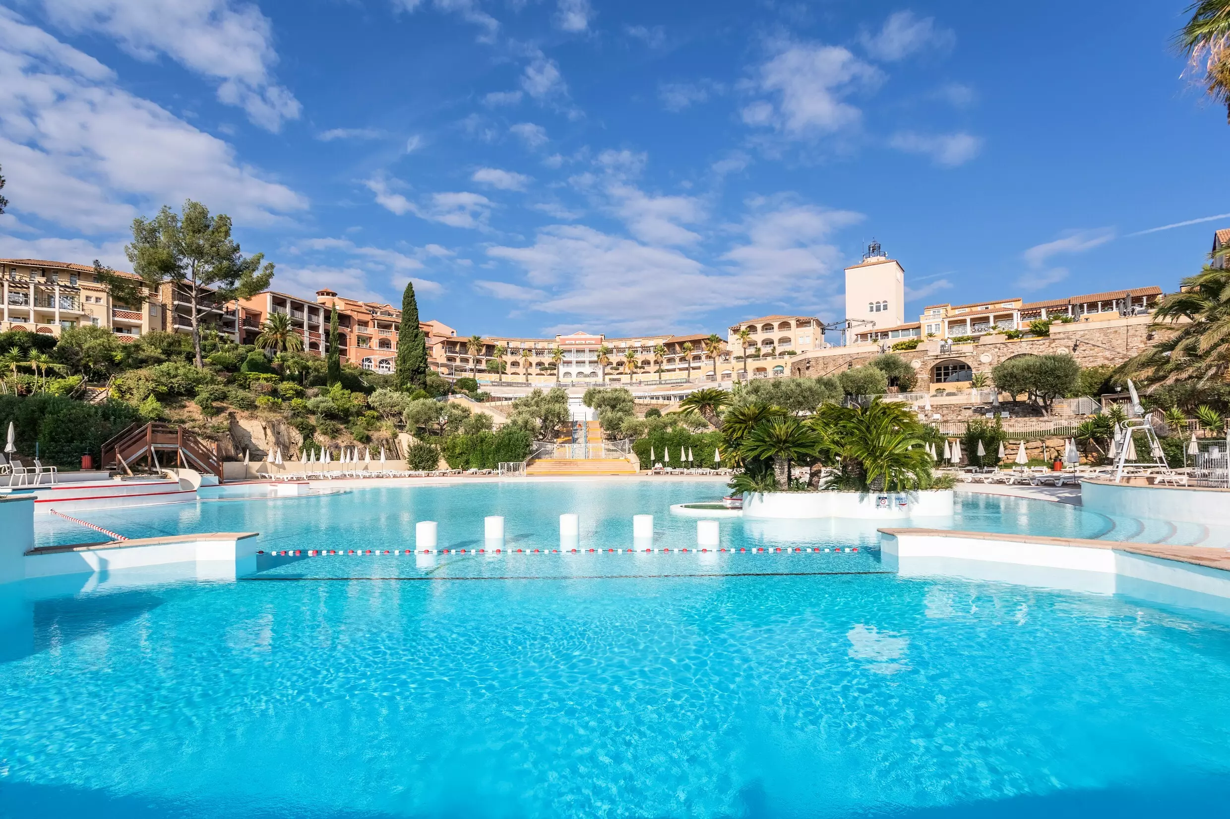 Pour vous rafraîchir, il y a l'embarras du choix. Découvrez la baie d'Agay au bout d'un petit chemin ou bien profitez des espaces aquatiques répartis dans tout le village : piscine à débordement pour les grands, piscine à vagues, à toboggan pour les enfants et pataugeoire pour les plus petits.